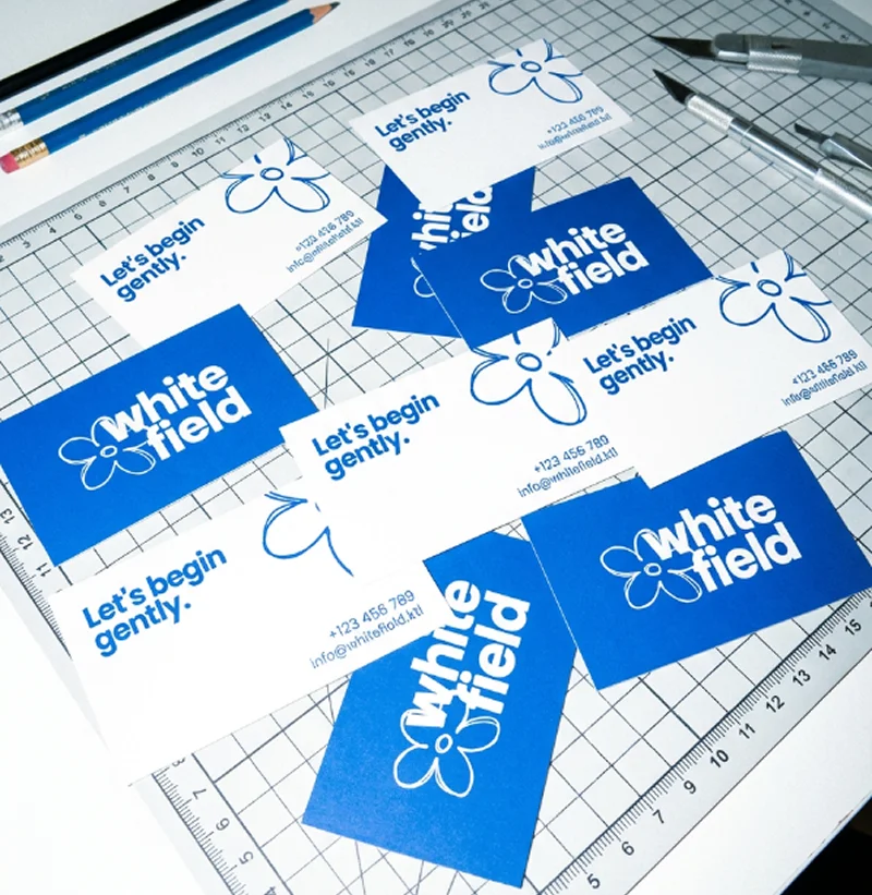 В основе айдентики — метафора цветка, символизирующего рост и новые возможности. Мягкие округлые формы делают бренд дружелюбным и визуально лёгким, а минималистичная среда усиливает ощущение чистоты и ясности.